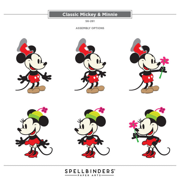 Steamboat Willie Duo Etched Dies are the cornerstone of the Say Cheese Classic Mouse Collection. Create detailed and layered die cuts of your favorite mouse couple. Whether you use all the pieces to give them hats and flowers, or go with a paired down, classic look, this set of 34 dies will have you saying "Golly!" and reaching for more paper! These two sweethearts are designed to face each other, and they have multiple arm options to make sure they've got the perfect expression. These cuties are perfect for pairing with the other dies in the collection, especially S4-1470 Frame & Sentiments. This charming (and big!) set is sure to become and instant favorite.