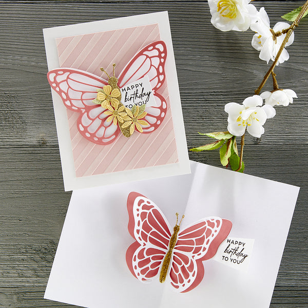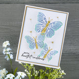 Butterfly Sentiments Clear Stamp Set is from the Bibi’s Butterflies Collection by Bibi Cameron. There are 14 clear Photopolymer stamps in the set. Three different sizes of butterflies can be stamped and cut with the S5-495 So Many Butterflies Etched Dies Set. Also included are eight sentiments to use for many occasions. They are designed to work with an acrylic block and made in the U.S.A.