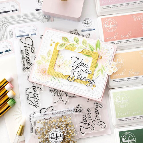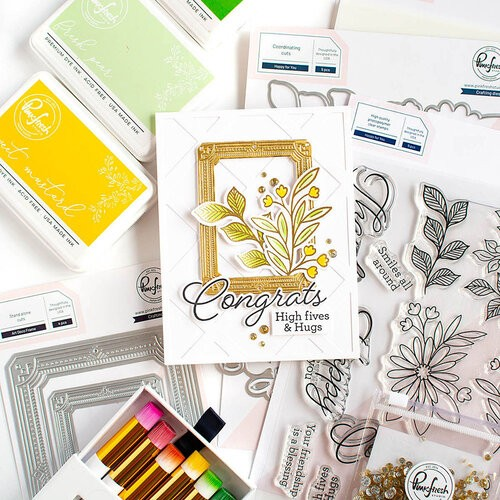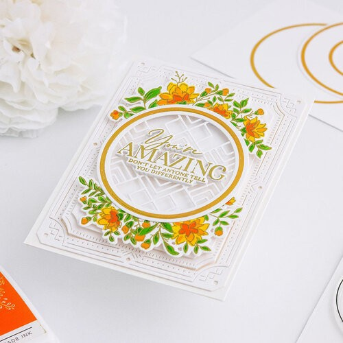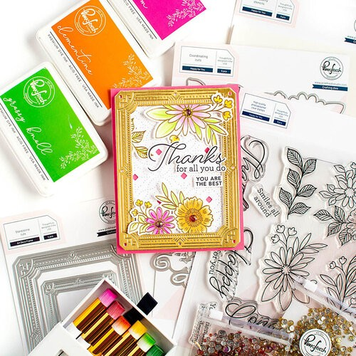 This four piece Art Deco Frame thin metal die set is designed by Inna Moreva for Pinkfresh Studio. This die set features frames with decorative edges and an Art Deco feel. The inner frames are separate from the outer decorative edges for more options. These dies are compatible with leading die cutting machines (sold separately). These dies can be used on cards, scrapbook pages, and other paper crafting projects. The large frame measures 4" x 5.25" and the small frame measures 2.5" x 3.25".