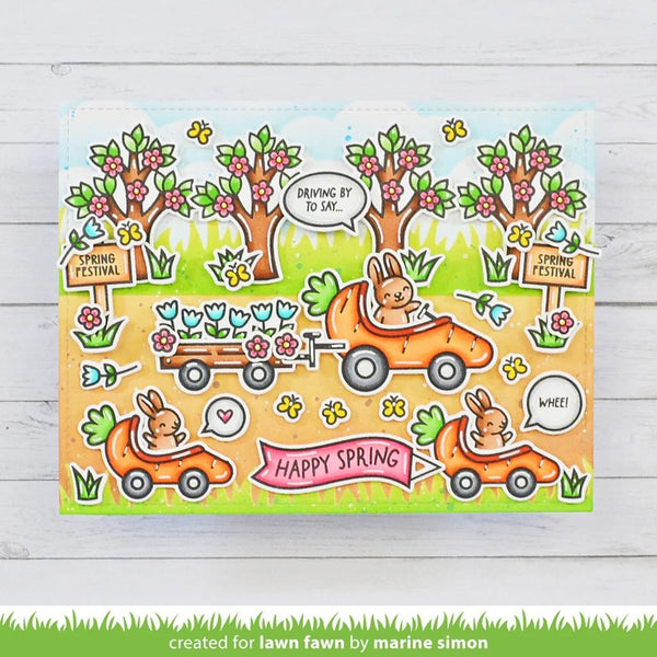 Coordinating set ideas: For more bunny friends, check out our Hoppy Little Friends Collection! Hit the road with Road Border or Simple Road Border. We also make these awesome road border dies in Slimline size! Come see our Slimline Road Border and Slimline Simple Road Border.