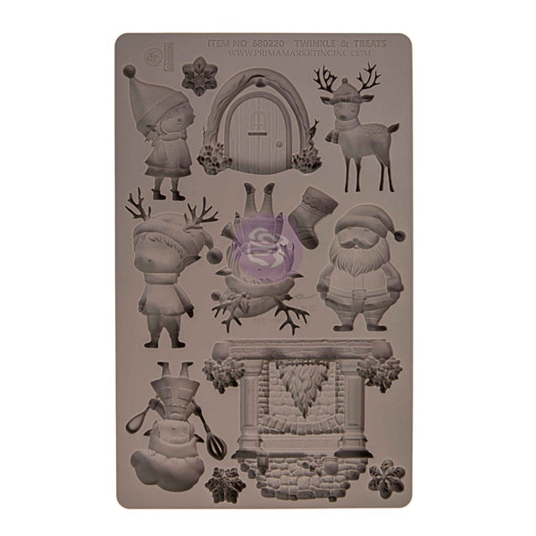 The Twinkle & Treats silicone mould is filled with the sweetest holiday icons, ready to cast again and again in resin, clay, modeling material, or even edible mediums. This mould includes elves, Santa, reindeer, stockings, snowflakes, a cozy fireplace, a woodland door, and more--everything you need to bring baking, winter, and Christmas storytelling into your creations.