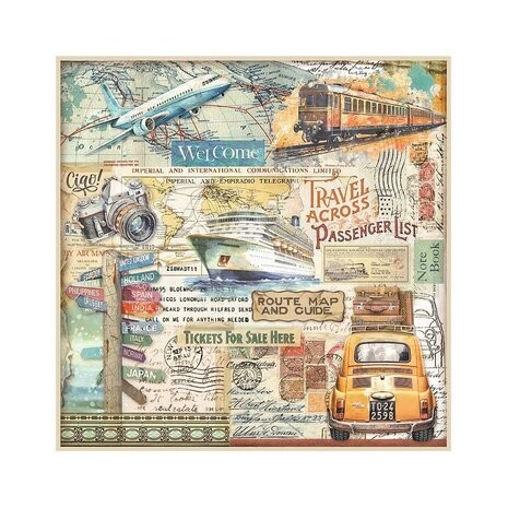 Stamperia Polyester Fabric 12"X12" 4/Pkg, Art Of Travelling