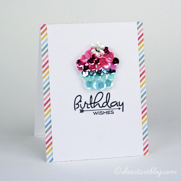 Who doesn't love Cupcakes? Ours is served with a cherry, strawberry hearts and balloons. They're calorie-free, and delicious on your scrapbook pages, cards, and mixed media projects.
