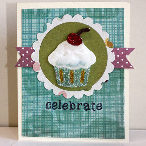 Create custom embellishments with 3D Foam Cupcakes. Wear Your Adhesive on the Outside and cover with Foil, Pigment Powder, glitter, flock, and even embossing powder. This high-density foam can be heat embossed!