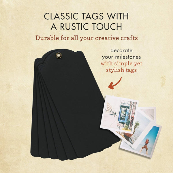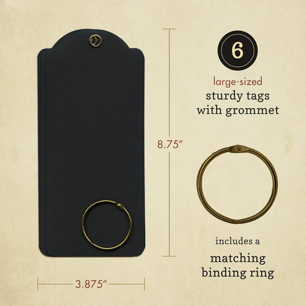 Six tags feature a sturdy card with grommet, including a matching binder ring.