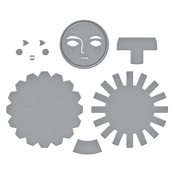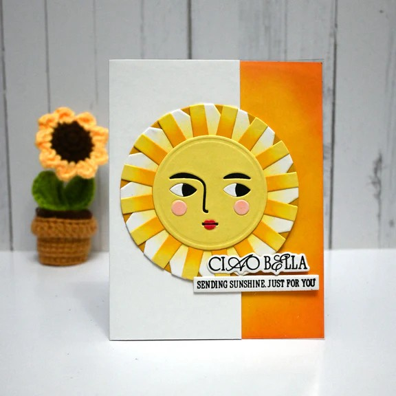 Under the Sun Etched Dies are from the La Dolce Vita Collection. The set of six thin metal cutting dies together, creates a magnificent sun shape with a wonderful facial motif to give it character!