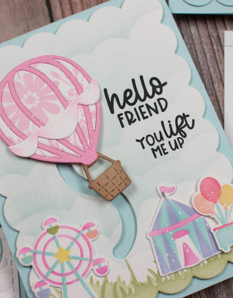 Float a little joy onto your cards with the Up, Up, & Away Die Set! This whimsical set of steel cutting dies includes pieces to build an adorable hot air balloon, complete with a balloon (also called an envelope) backer, layered stripes, a basket, a smaller balloon and basket, and extra details to make your scene truly take flight. Perfect for uplifting cards, celebrations, and any project that could use a sky-high smile!